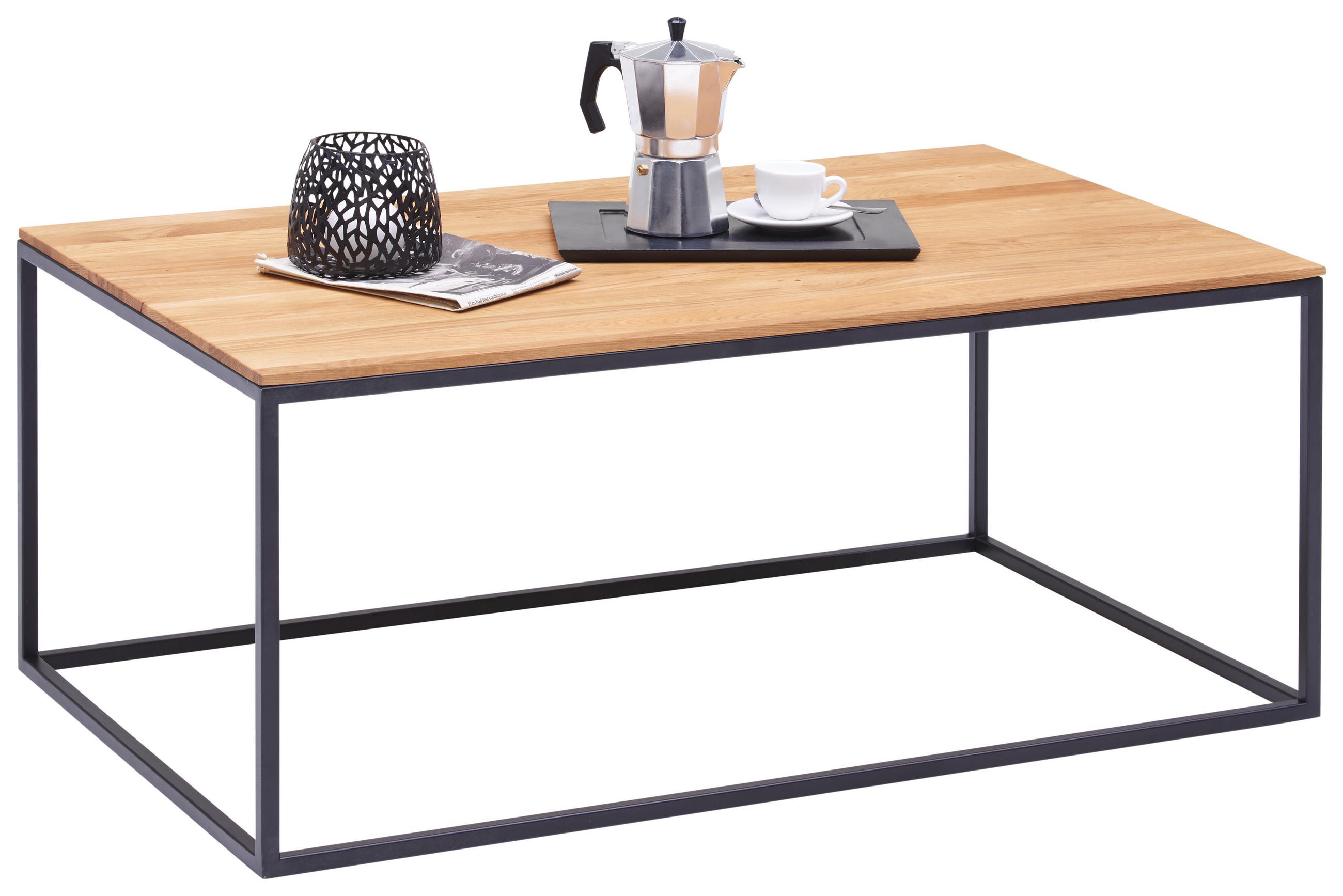 Ein lackiertes stahlgestell trägt die quadratische platte b x l. Dank der geölten oberfläche kommt die intensive maserung besonders gut zum vorschein und setzt einen natürlichen kontrast zum schwarzen metall im loft style.
